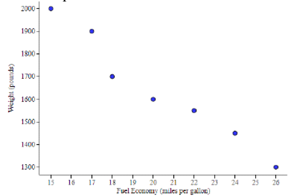 Researchers interested in the relationship between vehicle weight and fuel economy collected dat from randomly selected vehicles.