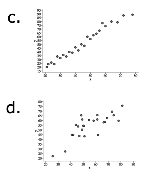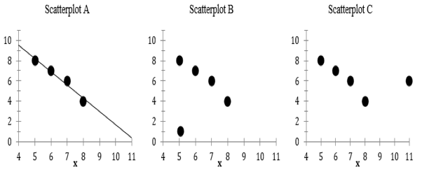 Scatterplots B and C display the same relationship with an extra point added to each.