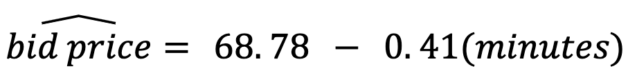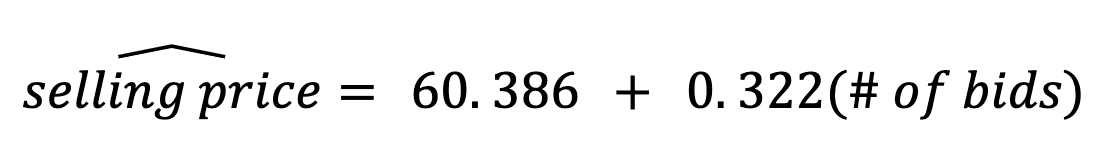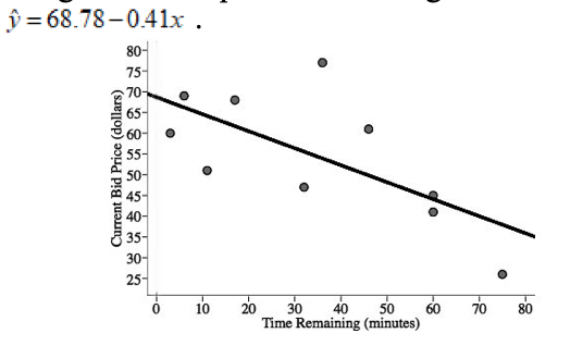 A student taking a statistics class and needed a more advanced calculator. She collected selling price and number of bids received from Ebay.com on the same model of calculator she needs to purchase.
