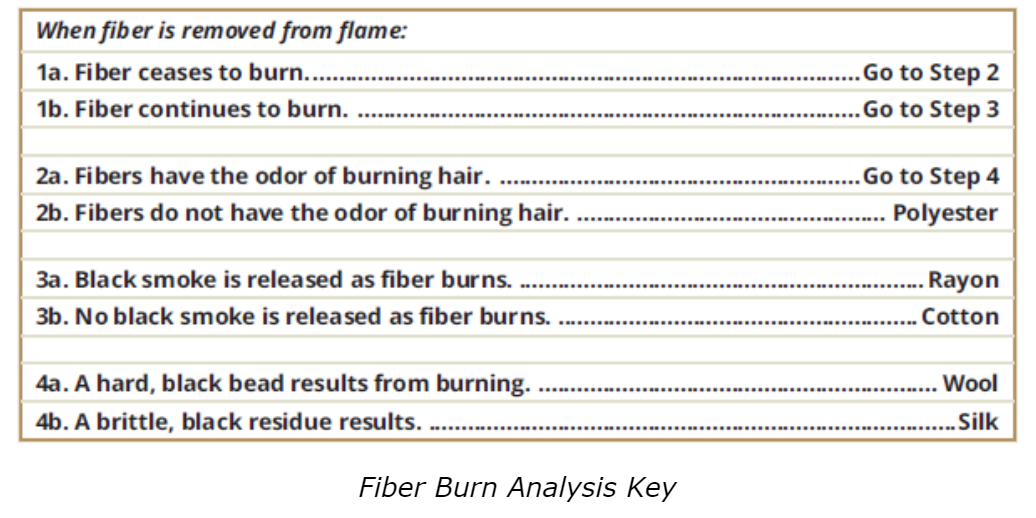 • There is a small sample of the fiber to the right of the microscope - perform a burn test on it using the forceps and candle.