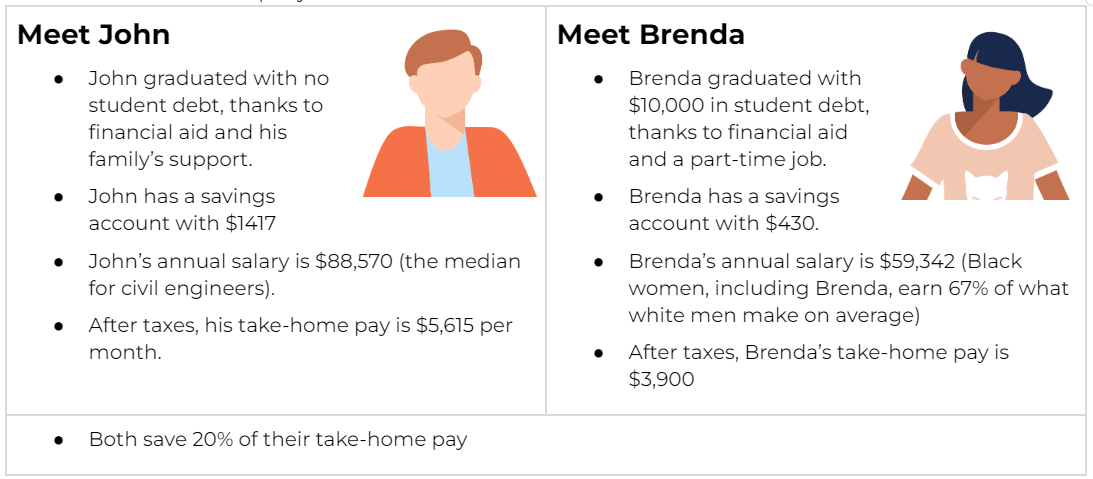 John and Brenda both recently graduated from Hightower University and started jobs as civil engineers at BuildIt Construction company.