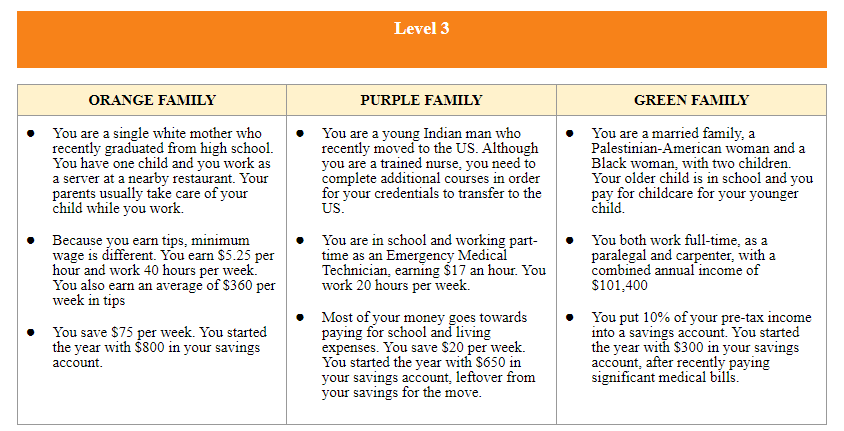 Bonus Points: How many weeks would each family need to save in order to build an emergency fund that covered 3 months of living expenses?