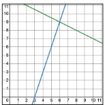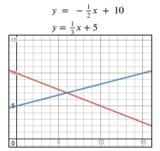 1. Given the graph of y=3x-9 and y=-1/2x+12