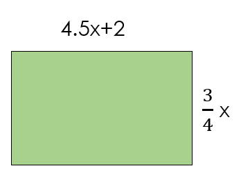 A rectangle has a length of (4.5x + 2) centimeters and a width of 3/4x centimeters.
