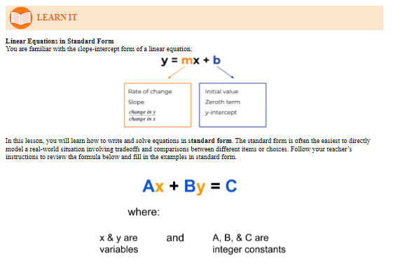Learn It & Practice It in Desmos: Writing Equations in Standard Form