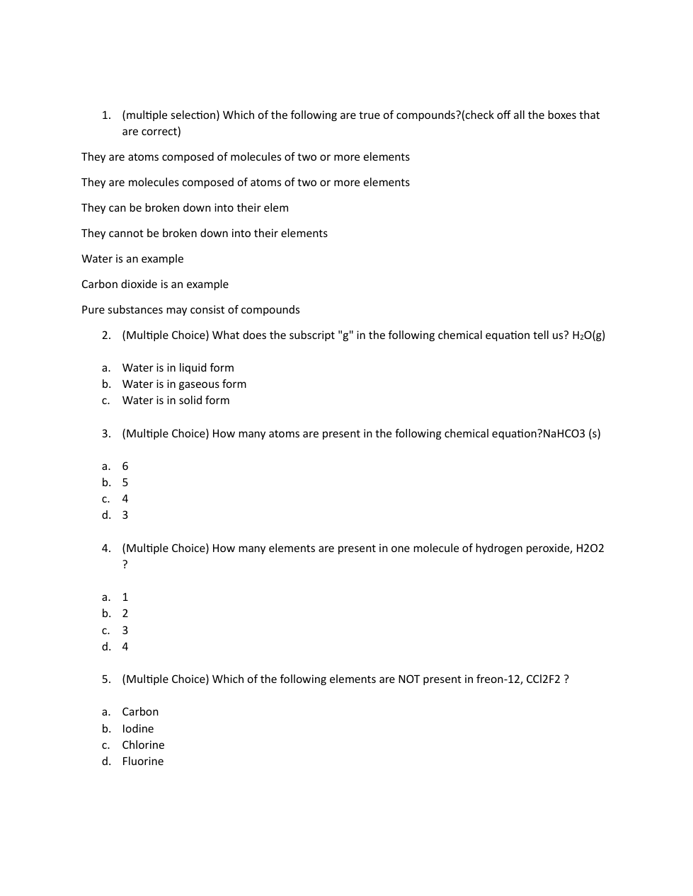 Which of the following are true of compounds? (check off all the boxes that are correct)