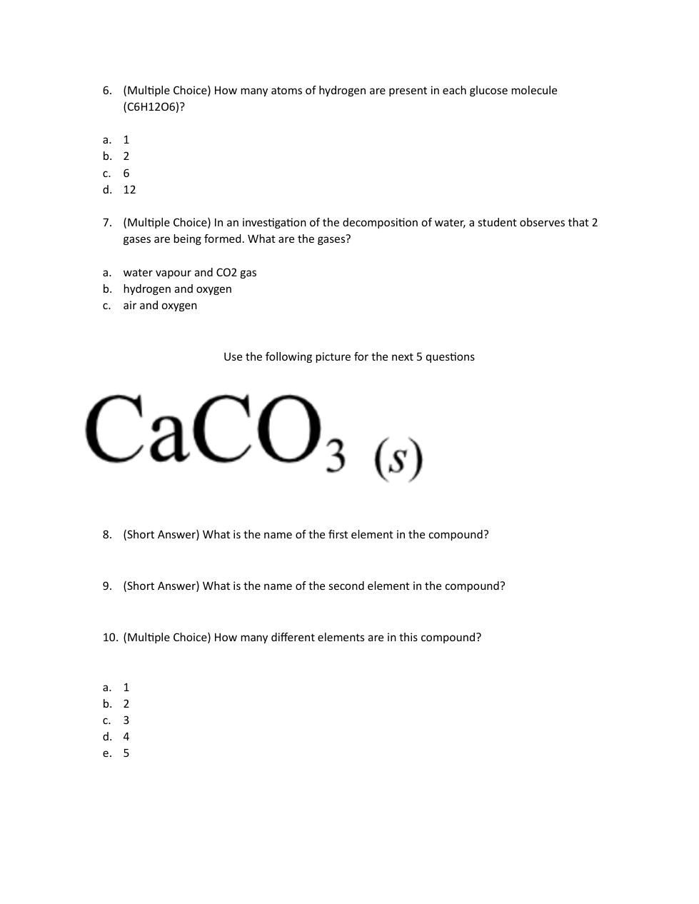 How many atoms are present in the following chemical equation? NaHCO3 (s)