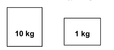 Observe the two containers of water shown. Both have the same temperature. How do their respective heat energies compare?
