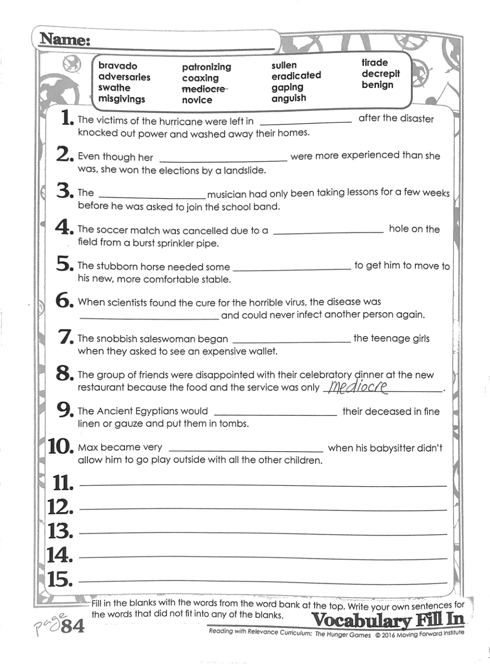 HG: Vocabulary, SEL, and Opinion survey