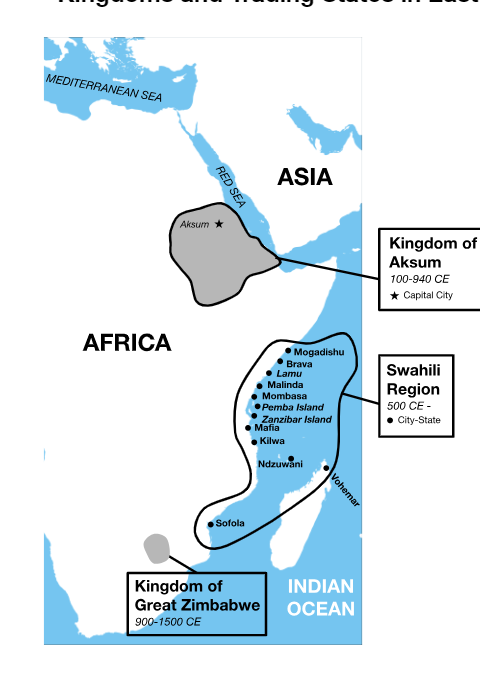 Which of the following early African societies was connected, through the Red Sea, to major maritime trade networks from the Mediterranean and the Roman Empire to India; and developed its own currency?