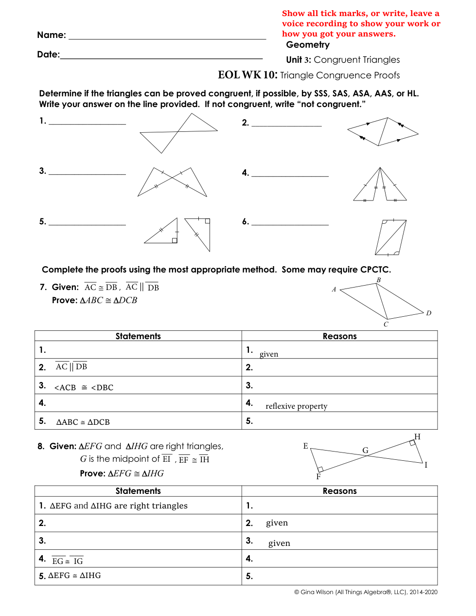Use your notes to help you practice these problems. Show all of your work needed for each question.