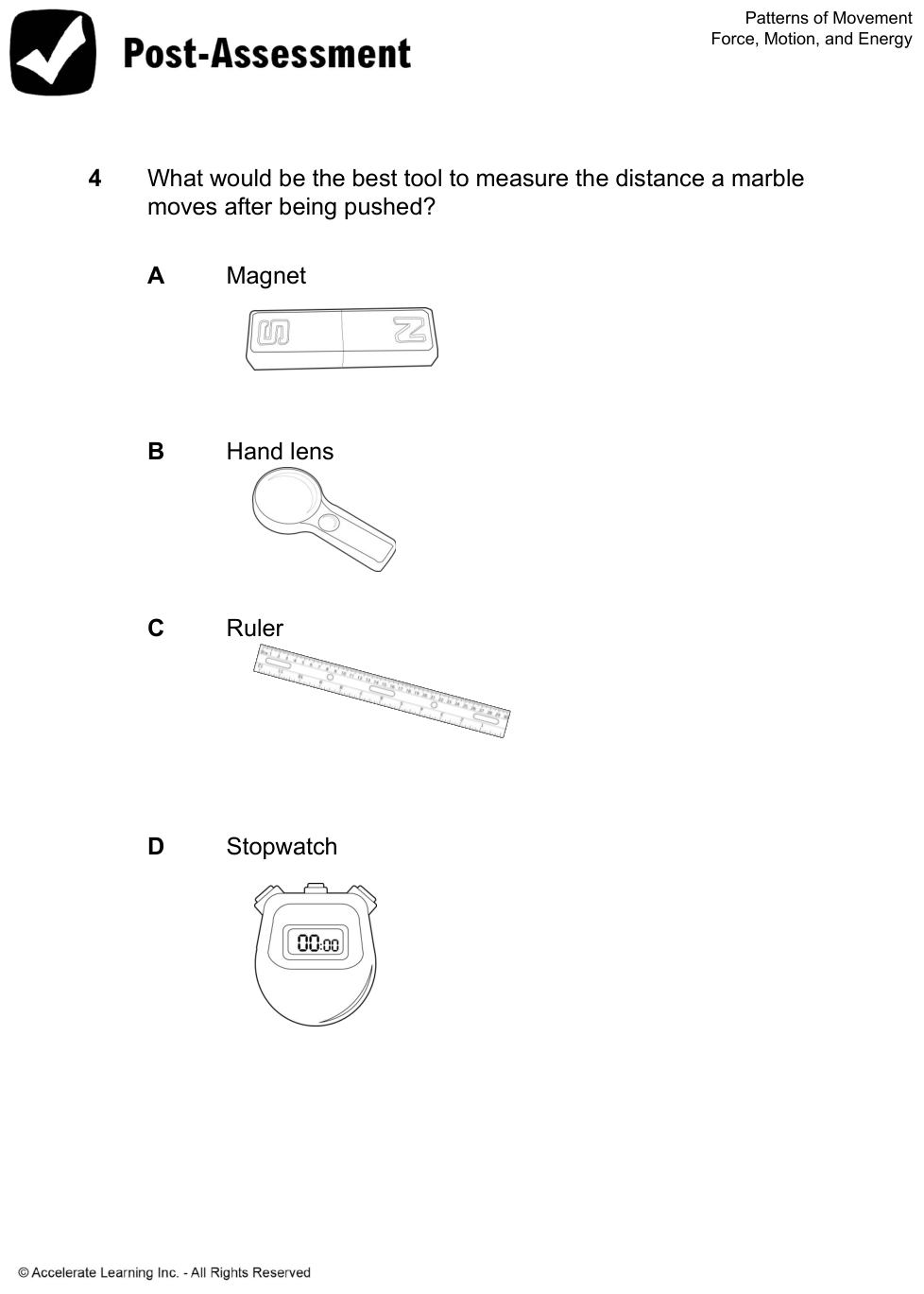 What would be the best tool to measure the distance a marble moves after being pushed?