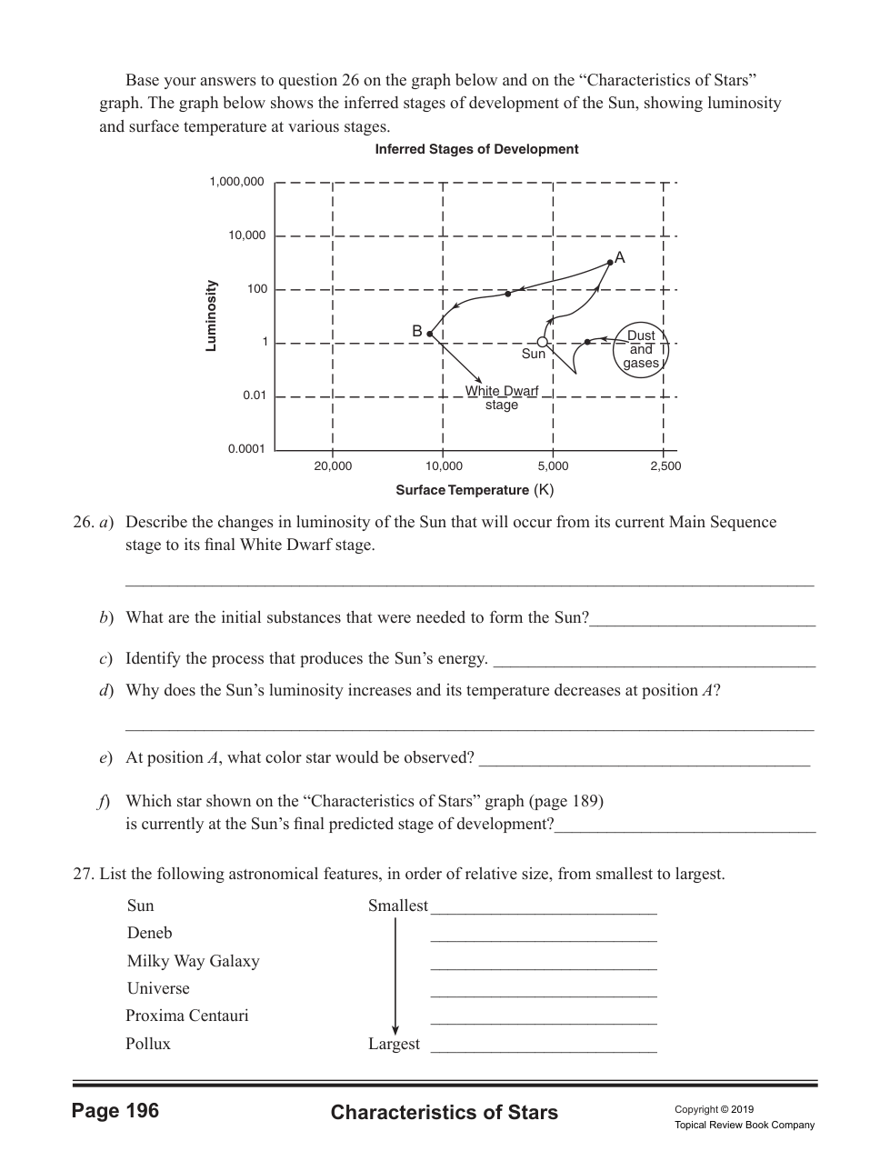 Which star shown on the “Luminosity and Temperature of Stars” graph in the Earth Science Reference Tables is currently at the Sun’s final predicted stage of development?