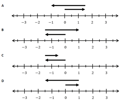 Which number line models the sum of correctly? Type the correct letter in the selection area