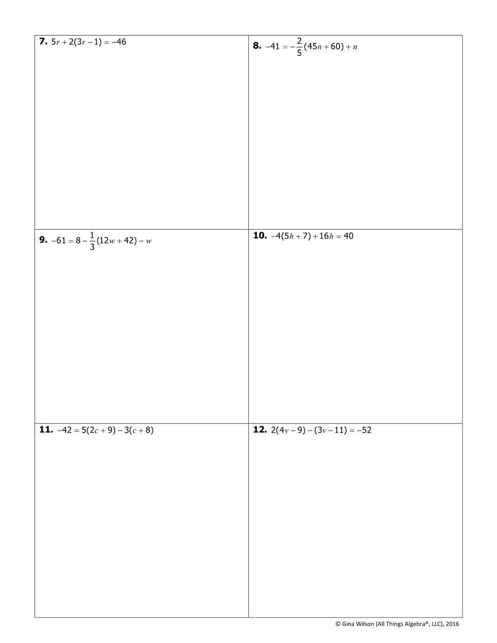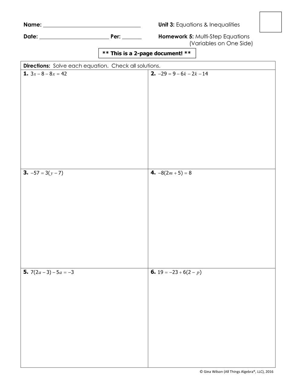 Unit 2a-6: Multi-Step Equations (Variable on one-side)