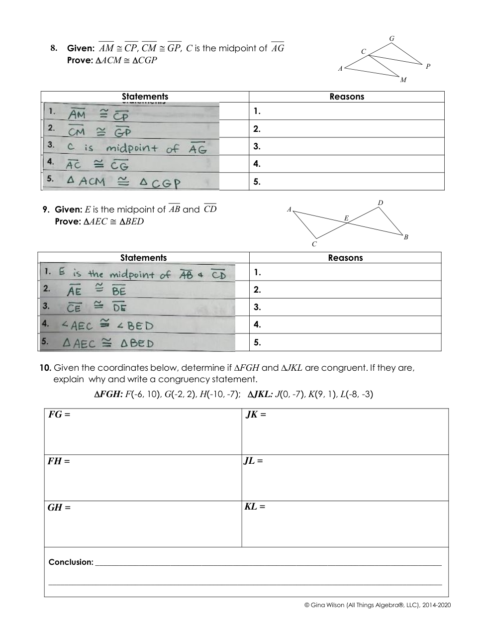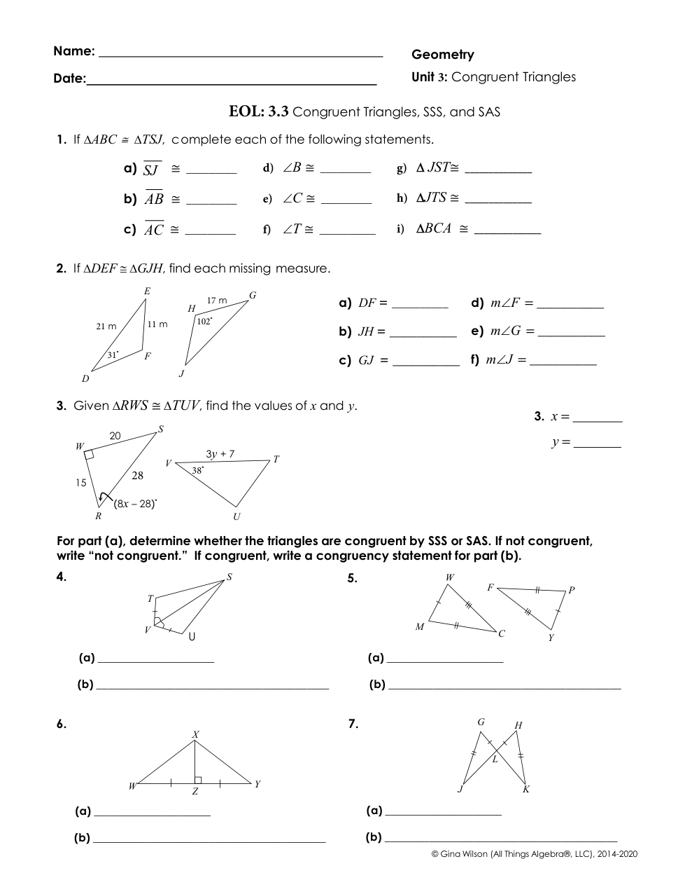 Wk 14 EOL 3.3 Congruent Triangles: SSS and SAS