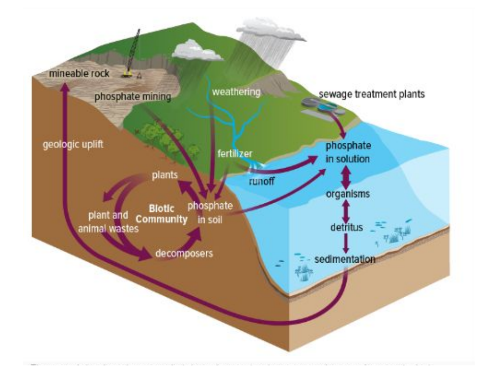 Identify two processes in the phosphorus cycle that occur in aquatic environments.