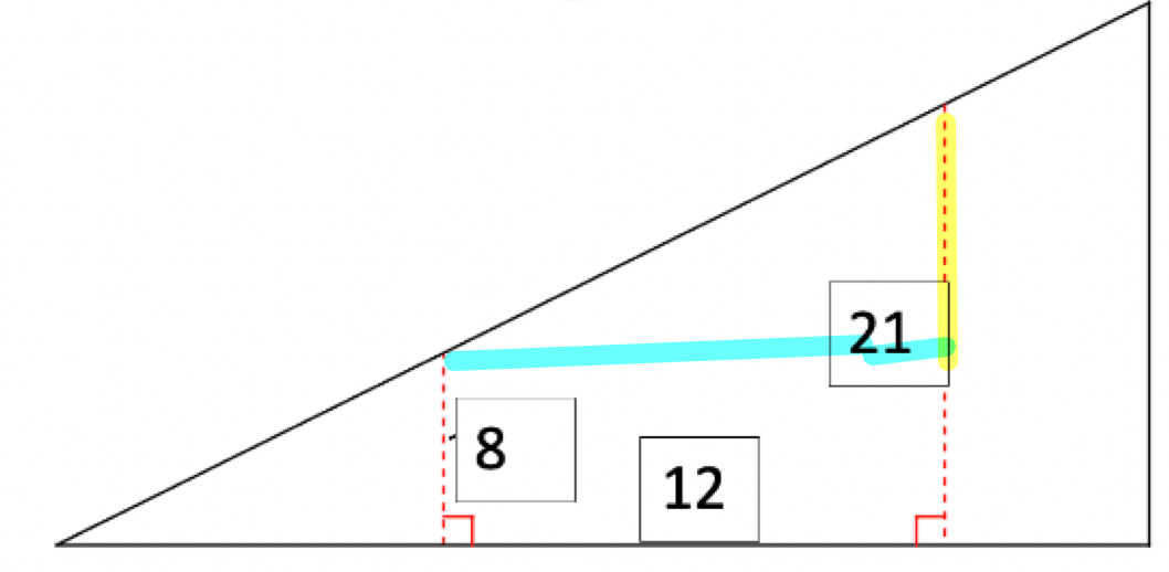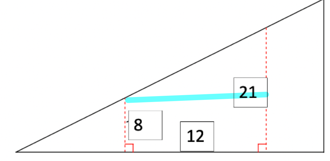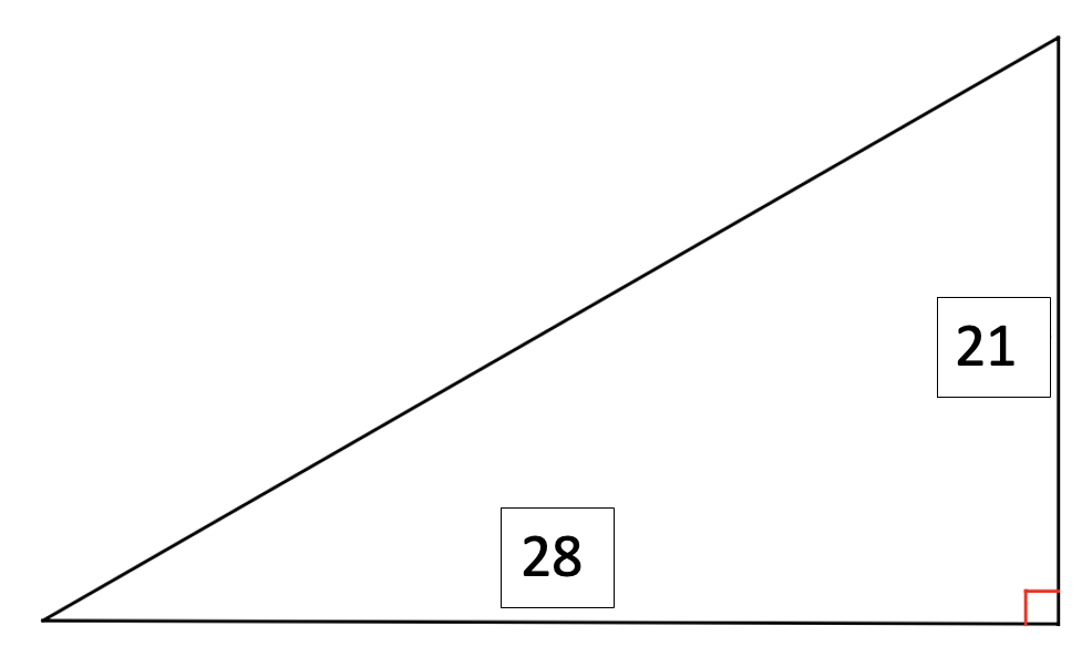 The skateboard ramp drawn below (not to scale) has a width of 28 and a height of 21.