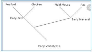 Examine the cladogram below. What does the diagram imply about the peafowl and the chicken?