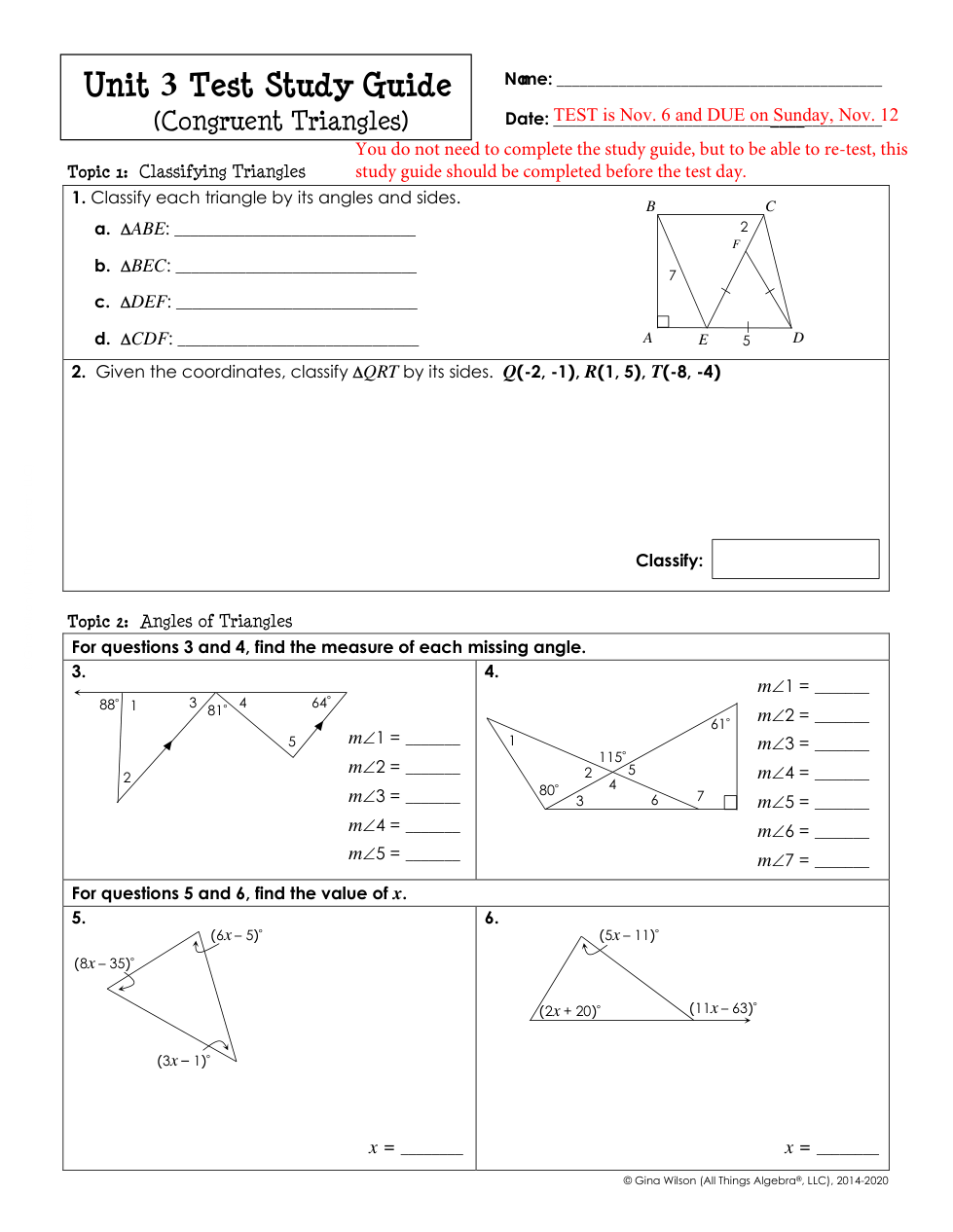 You do not need to complete this study guide to its entirety, but in order for a retest, you should have this completed before taking the Unit 3 test. You may also practice these questions and ask me to check them before the test. Remember to show your work so I can see if you are in the right direction.