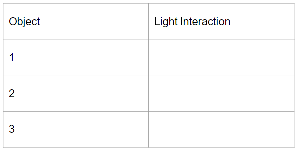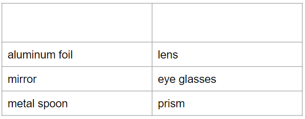 Students collected items around the room and tested them with a flashlight. They sorted the items in the table below. What would the BEST title be for each column?