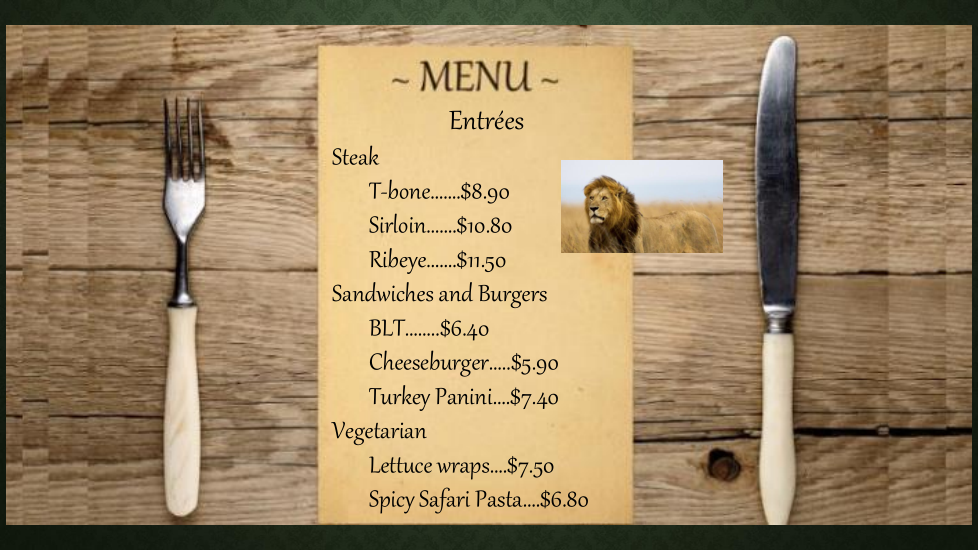 10/25 Safari Restaurant!