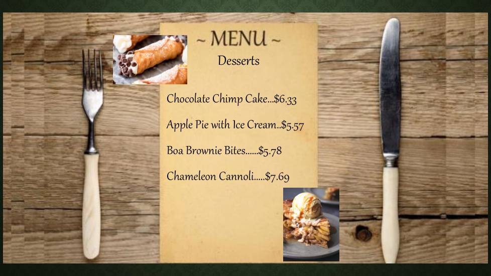 Mr. Boynce wants to order the chocolate chimp cake for himself and two other teachers. How much will each teacher pay if they split the price evenly?