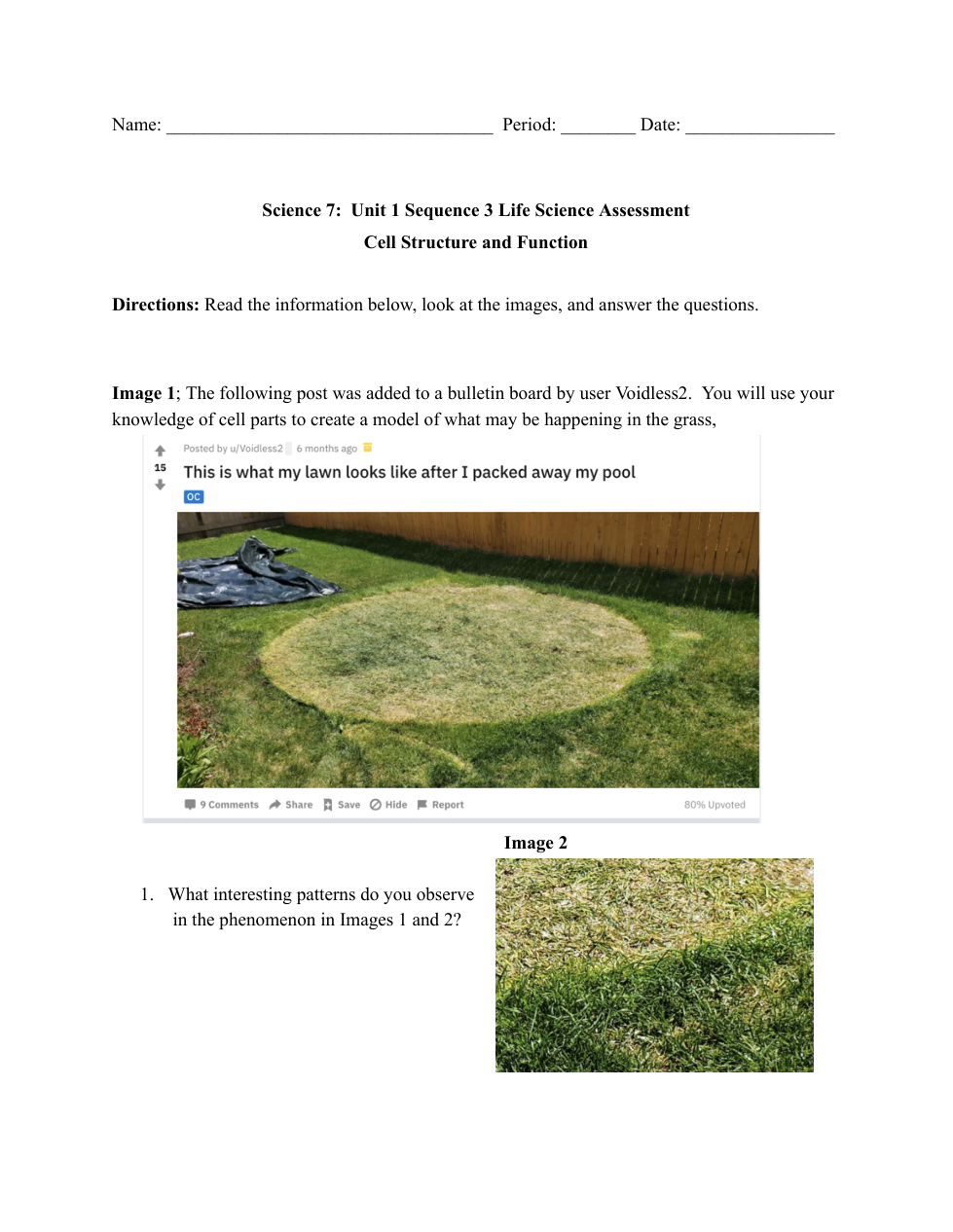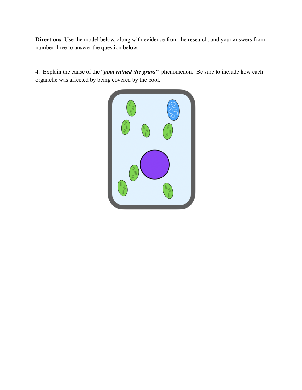 Explain the cause of the "pool ruined the grass" phenomenon. Be sure to include how each organelle was affected by being covered by the pool.
