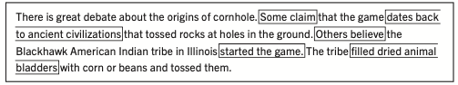 Which phrases from paragraph 3 show the use of contrast to explain the different ways corn hole may have originated? Select TWO correct answers.
