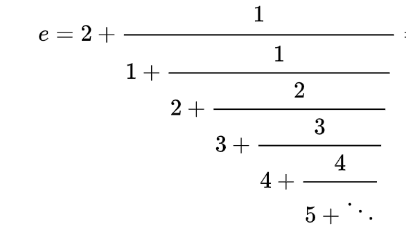 Those of you who were in my Algebra 2 class last year may remember when we learned about the number e, we said there were a couple different ways you could approximate e. One of those I described as "a russian nesting doll of fractions" which looked like this -