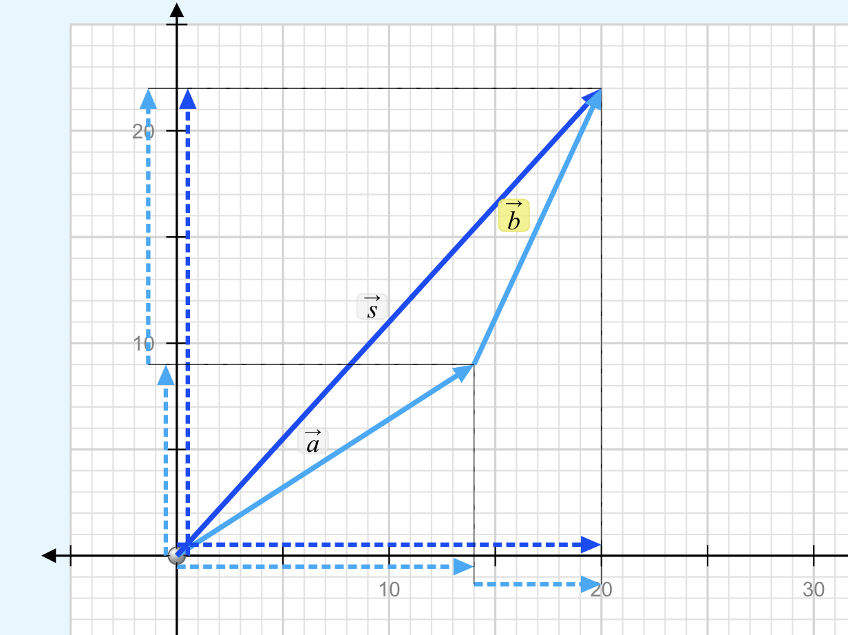 Play with the tool below, add vectors in 1d and 2d. notice the tool to turn on components. see how the x and y components of the sum vector are just the sums of the xs and ys of the added vectors.