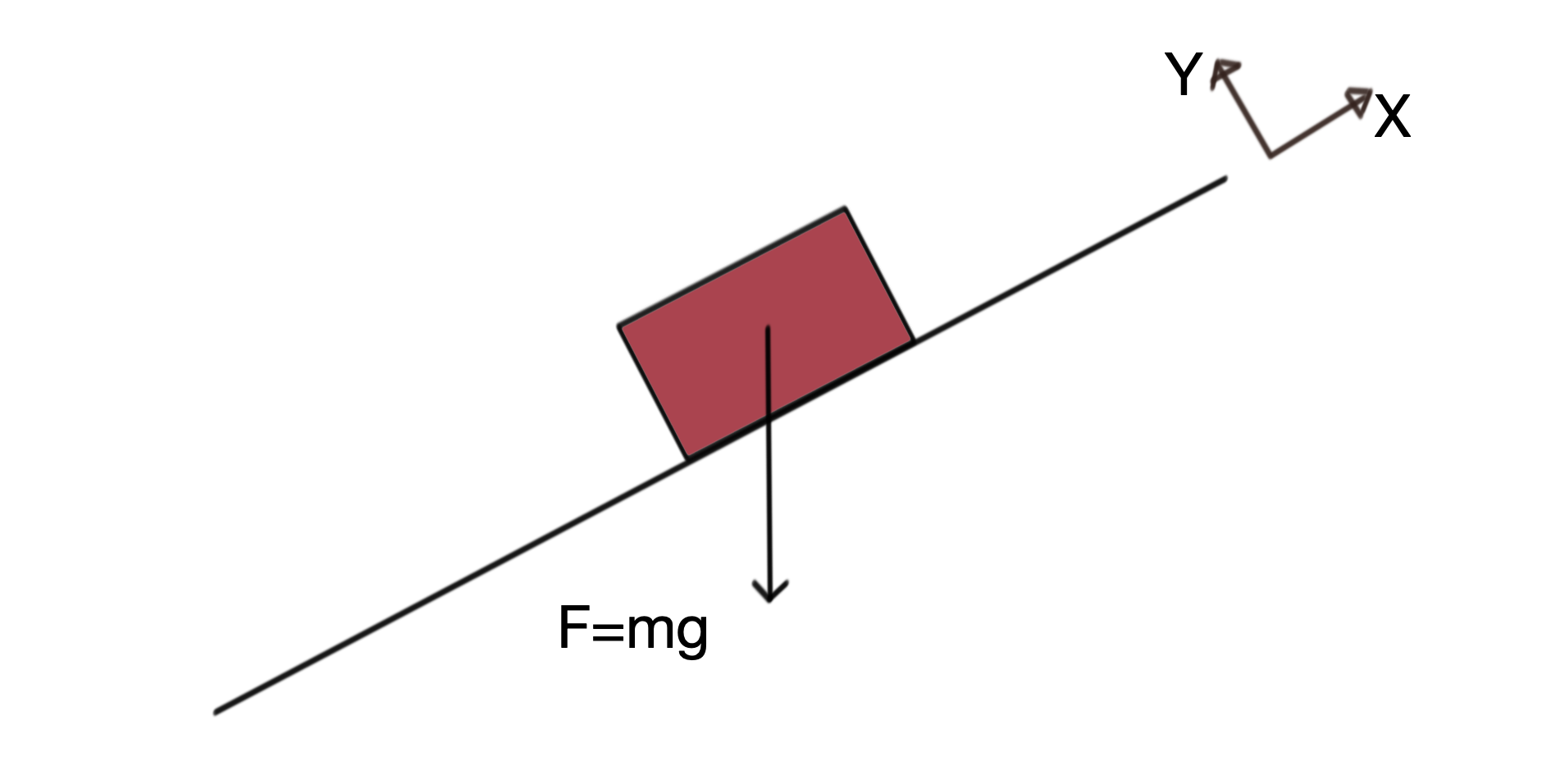 When we think of an inclined plane, we want to make life easy, so we set the x axis along the inclined plane, and the y axis perpendicular to that line.