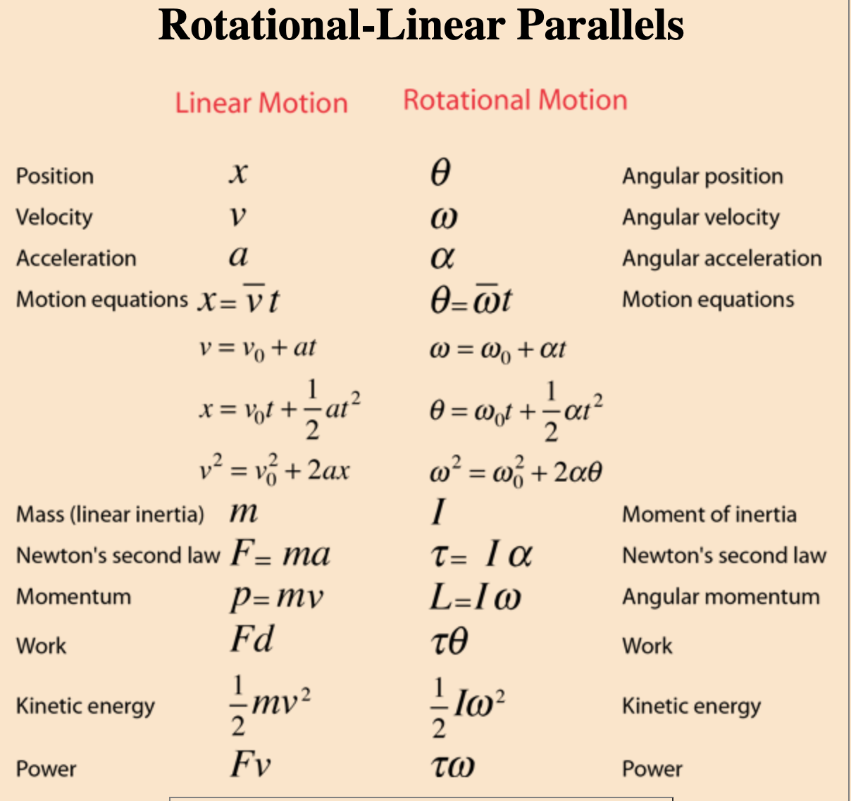 What other differences do you see between the units of the rotational moment side and the linear motion side?