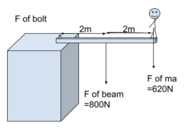 Two other forces are on the beam, the force of the bolt, and the normal force from the block. in what direction would the force of the bolt be??