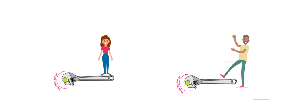 I have to turn a bolt and the wrench is stuck. Explain why the man is going to have a harder time turning the bolt than the woman. Assume the man and the woman have the same mass.