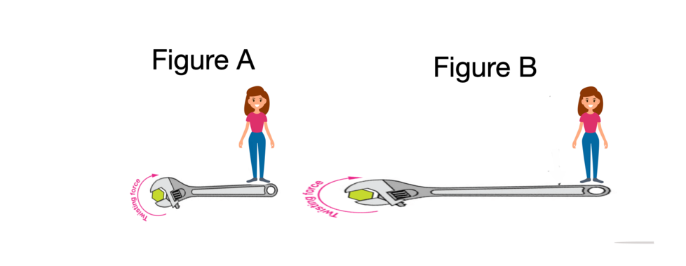 The bolt is stuck, and I am trying to use a wrench to turn it. I jump on the wrench. Do I create a larger torque in figure A or figure B?