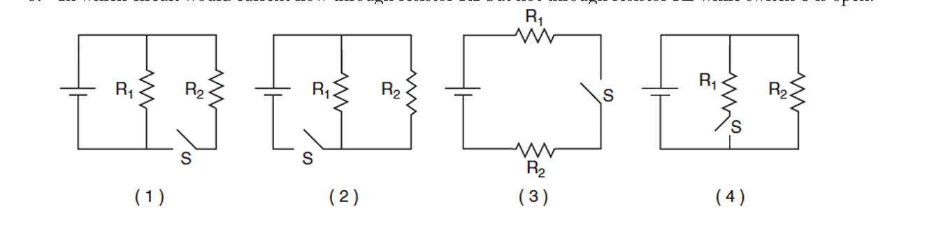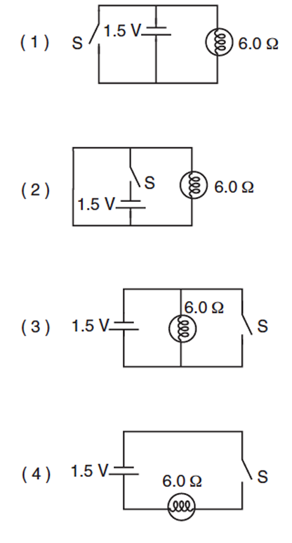 A 6-ohm lamp requires 0.25 ampere of current to operate. In which circuit below would the lamp operate correctly when switch S is closed?