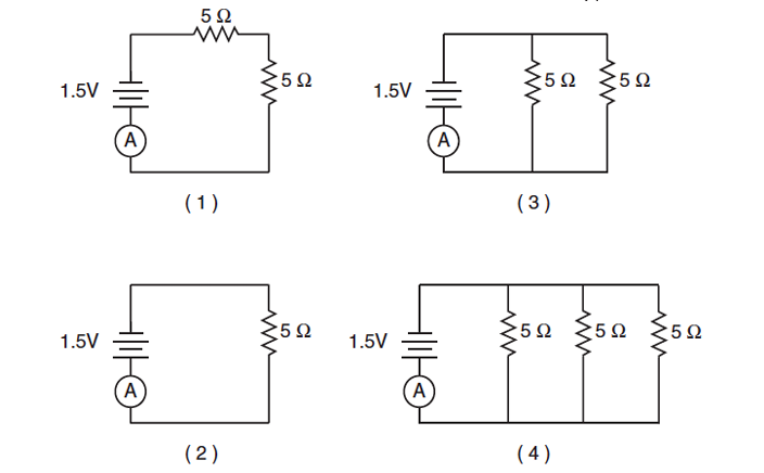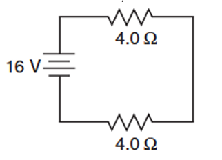 In the circuit diagram below, two 4-ohm resistors are connected to a 16-volt battery as shown. what is the equivalent resistance in the circuit?
