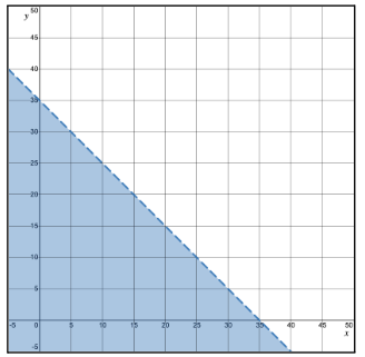 In the previous activity, you made trade-offs based on real-world constraints. We can represent these types of constraints using linear inequalities. Explore the example inequality and graph below, before learning how to graph real-world linear inequalities in the next activity.