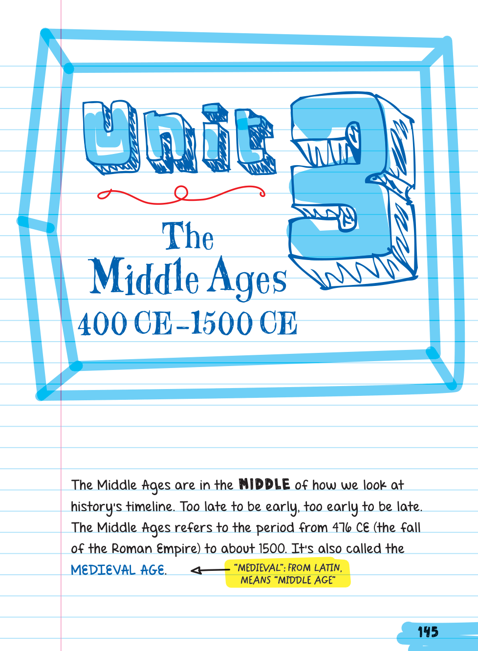 The Middle Ages or Medieval Age took place from 476 CE, the fall of the Western Roman Empire, to about 1500.