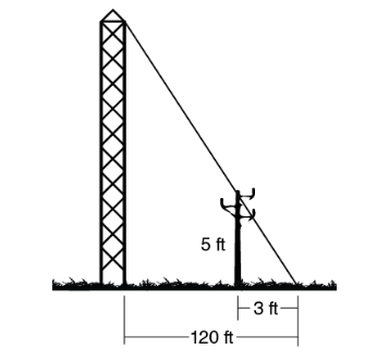 A wire that runs to the top of a tower is attached to the ground 120 ft. from the tower show above. How tall is the tower?
