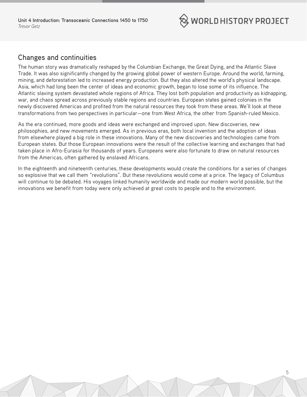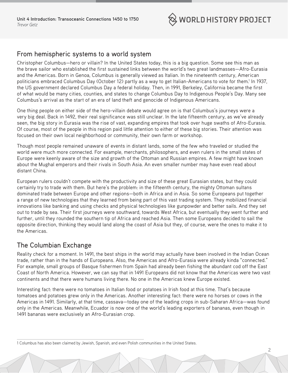 What resource became the great facilitator of global trade during the Columbian Exchange? (pg. 4)