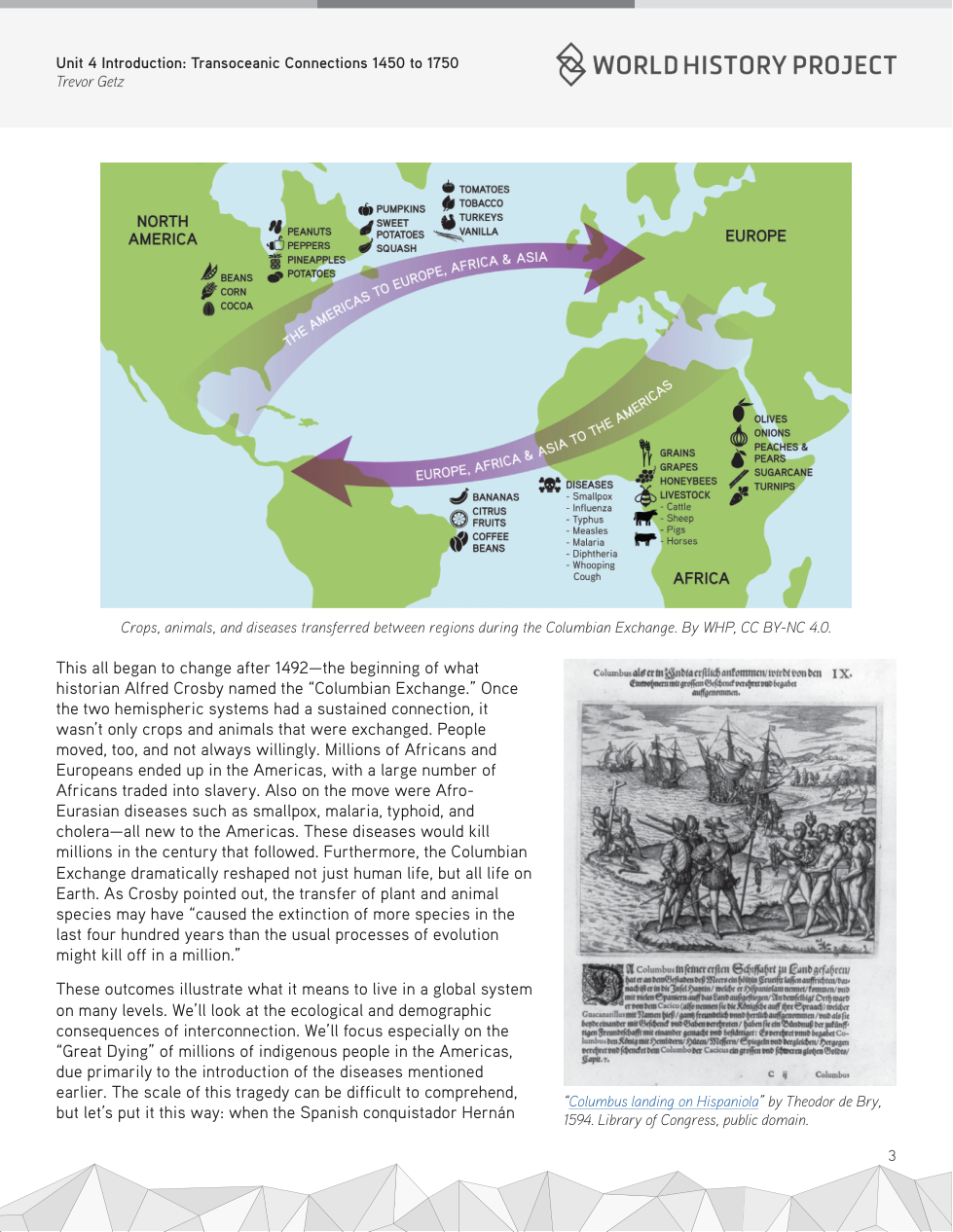What were some of the diseases introduced to the Americas during the Columbian Exchange? (pg. 3)