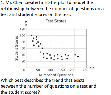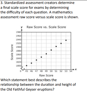 There is a linear association. As the raw scores increase, the scale scores decrease.