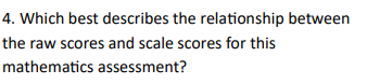 There is a linear associaton. As the raw scores increase, the scale scores increase.