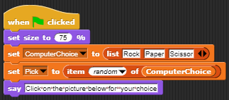 Lets you choose from Rock, Paper, Scissor,Moves a sprite to a random location