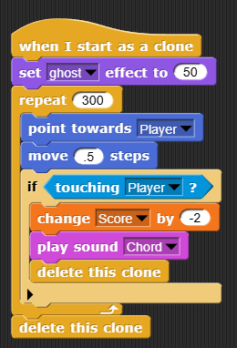 What happens to this enemy Sprite when this clone script runs in Friends and Enemies?