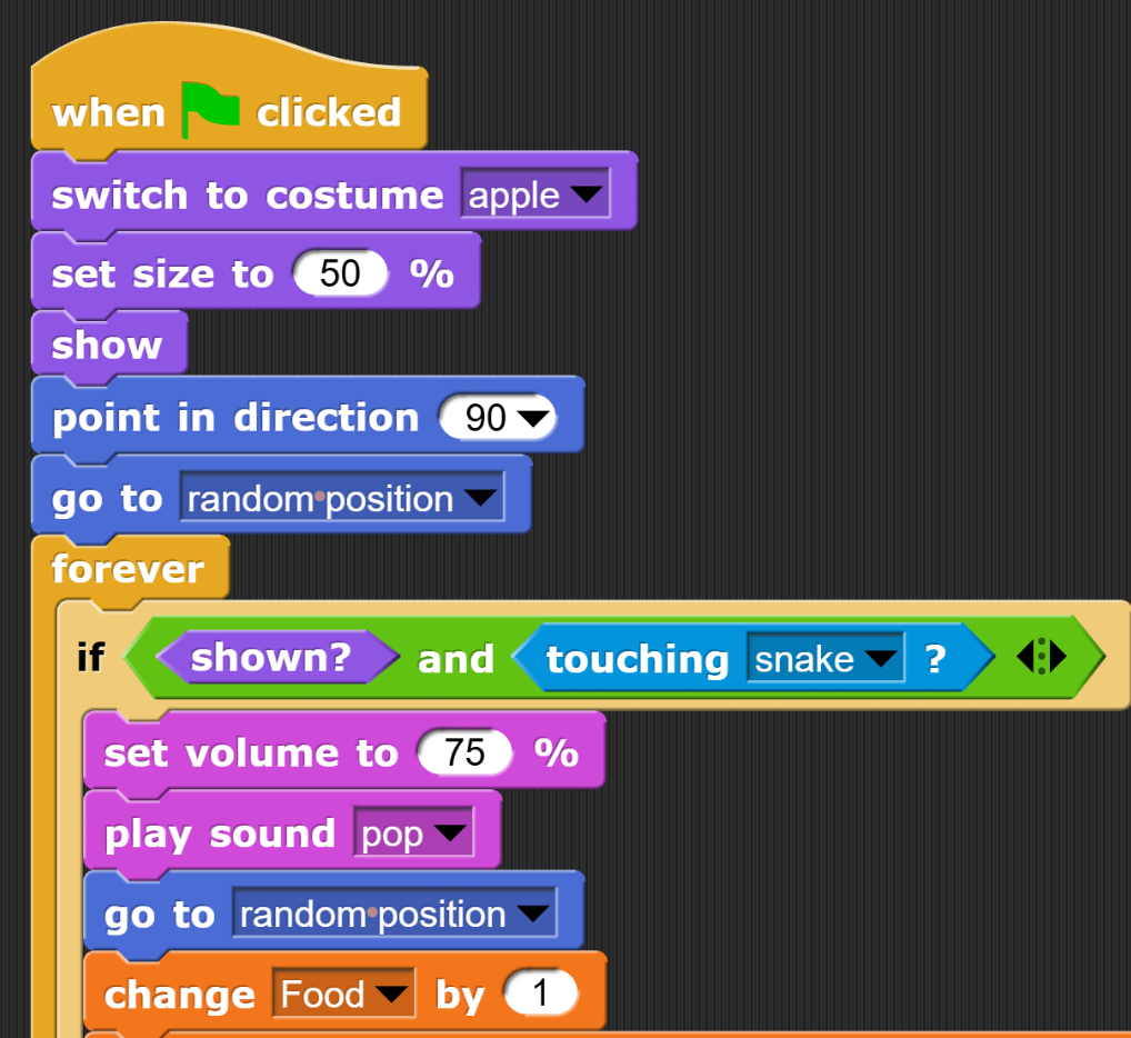What is "and" an example of from the Snake code?