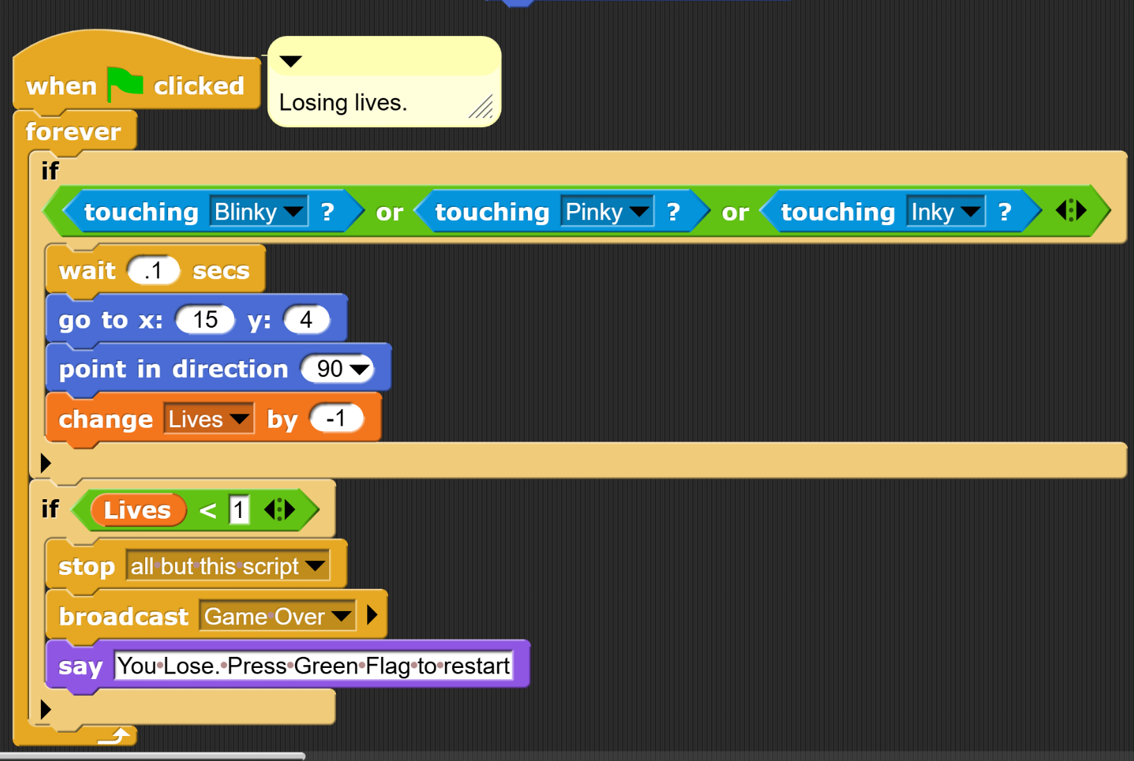 What is "or" and example of from the Pac-Man code?