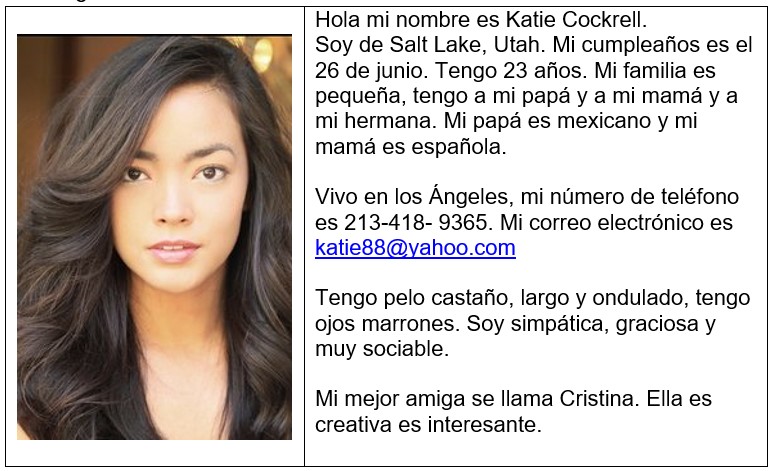 Part 6 - A escribir - In this scenario, Boston Collegiate will be hosting several Spanish exchange students from Madrid and is hoping to assign American mentor students to each of them. In order to find a good match for the students, the school has asked you to create a short video to introduce yourself and your best friend. Write out your script for the video, in which you mention the following: